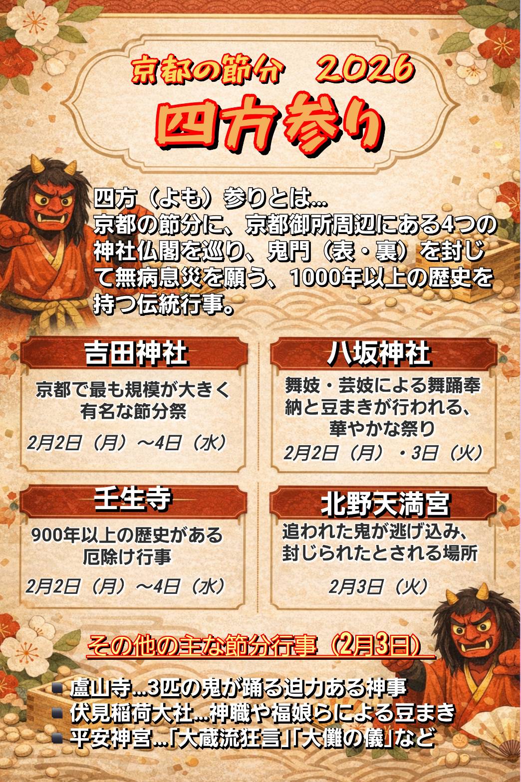 節分の京都は、冬の静けさの中に春の気配が感じられる特別な季節です。
